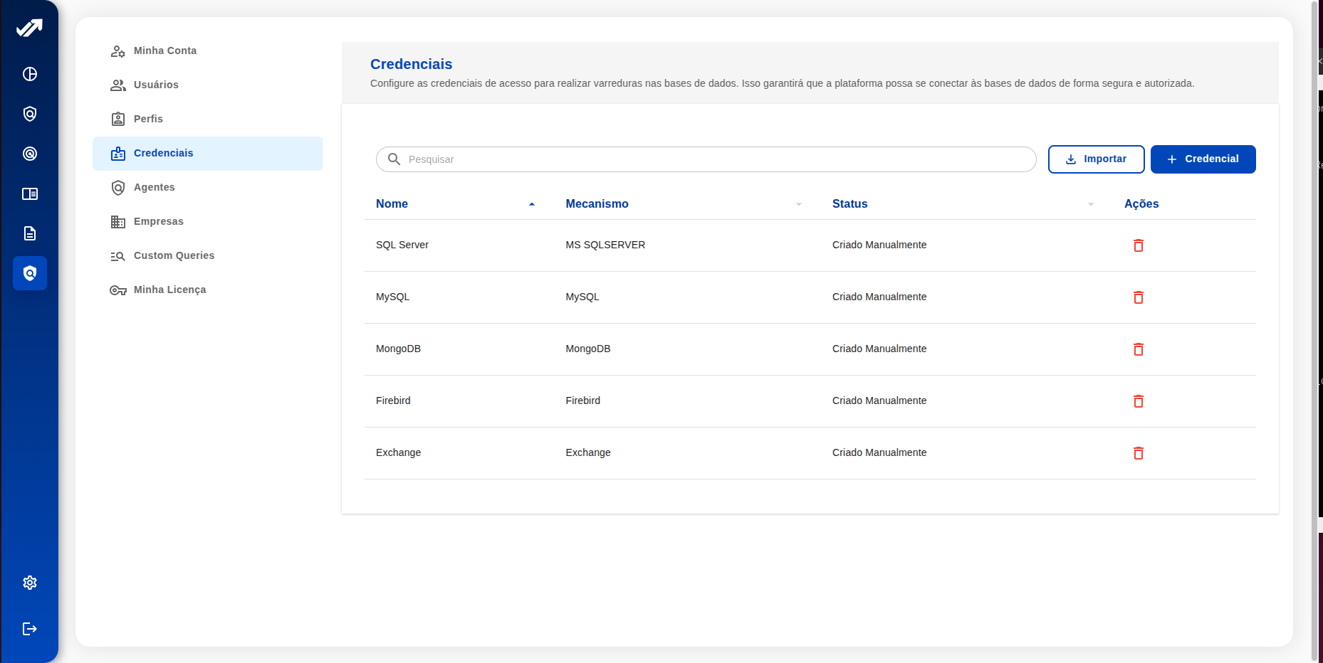 O Data Discovery se conecta aos principais sistemas, bancos e serviços utilizados por grandes organizações — de CRMs a diretórios de rede, de servidores Linux a planilhas em nuvem.