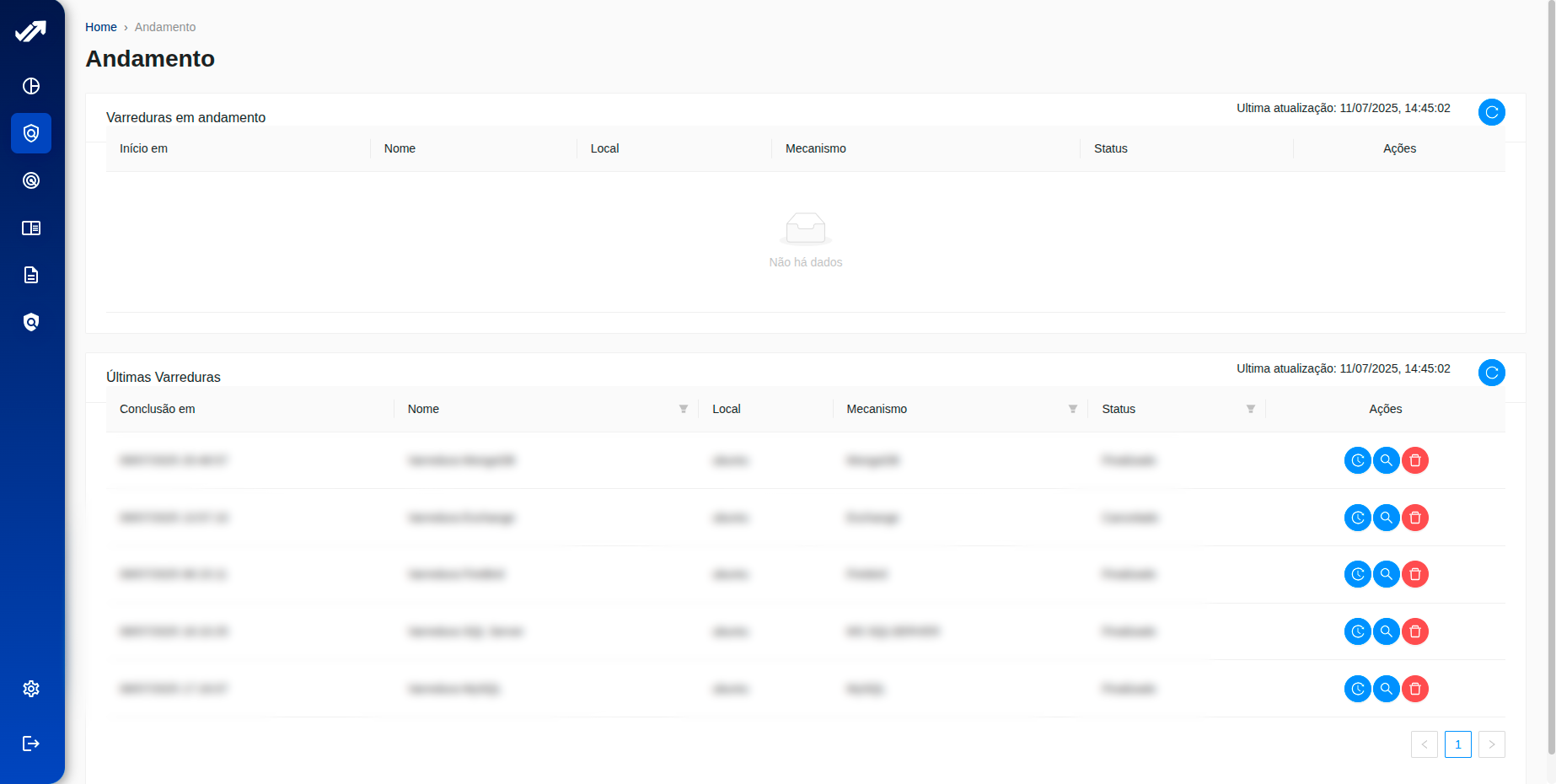 Identifique falhas, acompanhe planos de correção e registre evidências de tratamento.